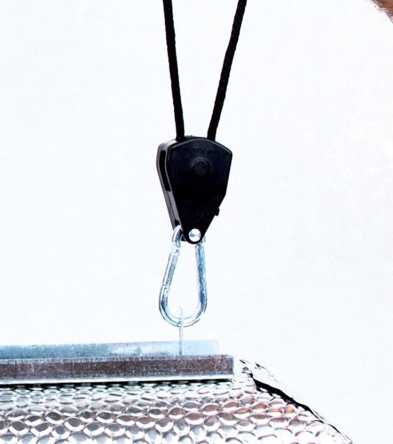Die Seilratsche bietet eine praktische Möglichkeit, Beleuchtungs- und Belüftungsvorrichtungen in Ihrem Anbauraum aufzuhängen.